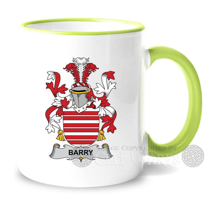 An 11oz white ceramic mug, with green trim - permanently imprinted with your family's Irish Coat of Arms, in full color on both sides. ...Read more
