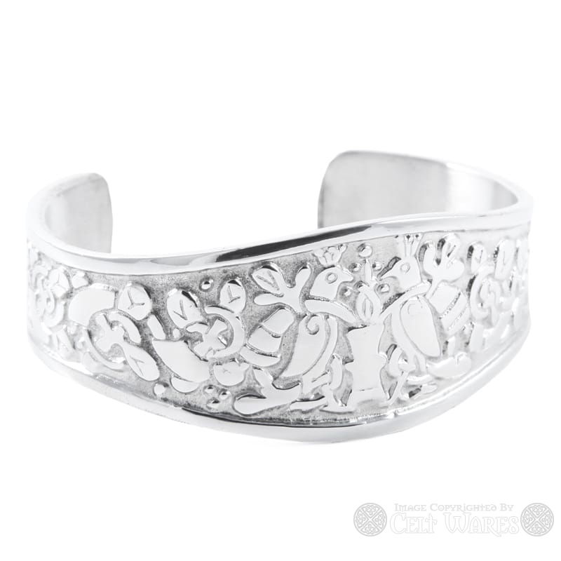 In the center of this charming bracelet are two birds which appear to be wearing crowns, hence the title Royal Birds. From this engaging center the bracelet tapers off (from 1" down to 1/2") in an interesting intricate design.
