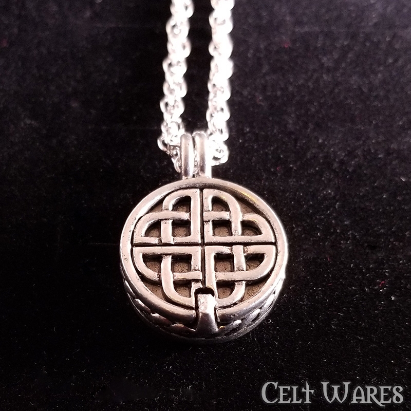 This is not only a interesting piece of Celtic jewelry, but is also a diffuser for your favourite perfume or essential oil. The openwork Celtic Knot on the front of the pendant allows your favourite scent to diffuse around you.