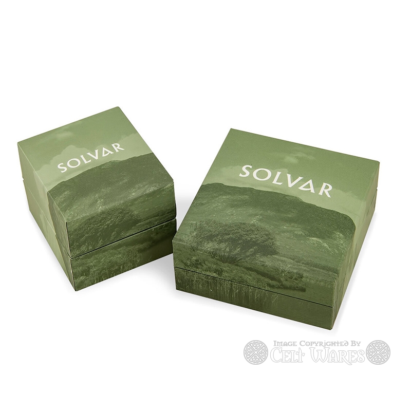 A delightful Trinity and Connemara Marble pendant with a modern twist. This Sterling Silver drop necklace is expertly crafted with no less than four Trinity Knots, growing progressively larger, as they drop to meet the Connemara Marble. A very attractive piece of Irish jewelry.