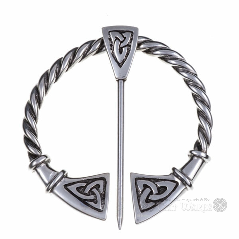 This impressive penannular brooch is a striking accessory, decorated both on the hoop ends, and on the pin head, with a Trinity Knot.