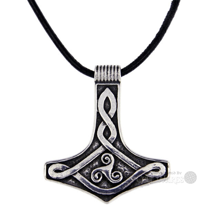 Thor is the most well known of the Scandinavian gods, and this pewter pendant is a representation of the legendary "Thor’s Hammer", with which he slayed his enemies. Note how it is decorated with a Celtic Knot and a Triskele.