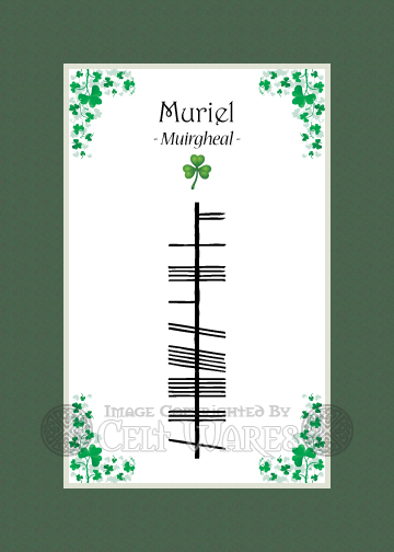 An Irish name meaning fair one of the sea, as it compounds 'sea' (muir) and 'bright' (geal).